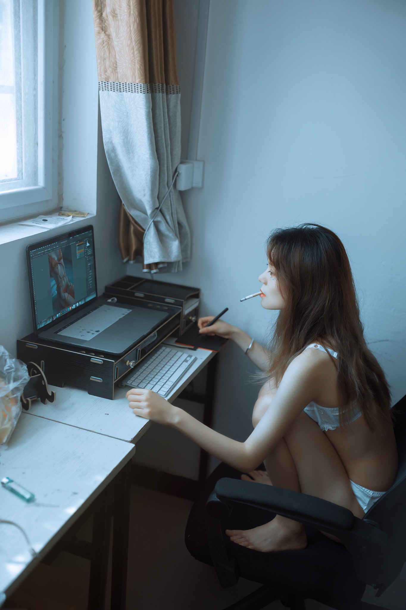 萌白酱福利—白吊带袜