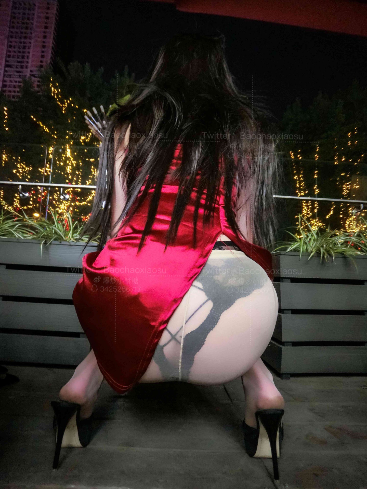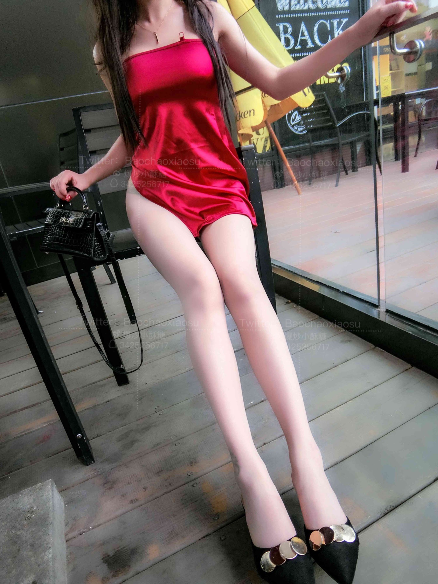 红色超短旗袍街拍漏出